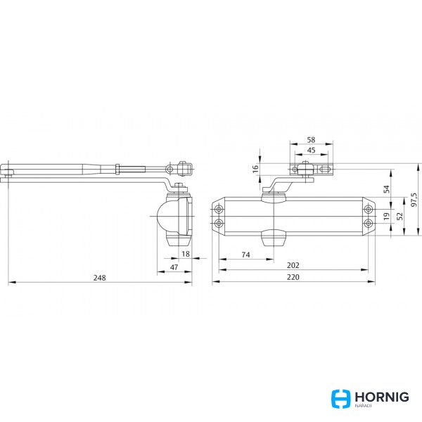 Dverový zatvárač s hrebeňovou technológiou a lomeným ramienkom