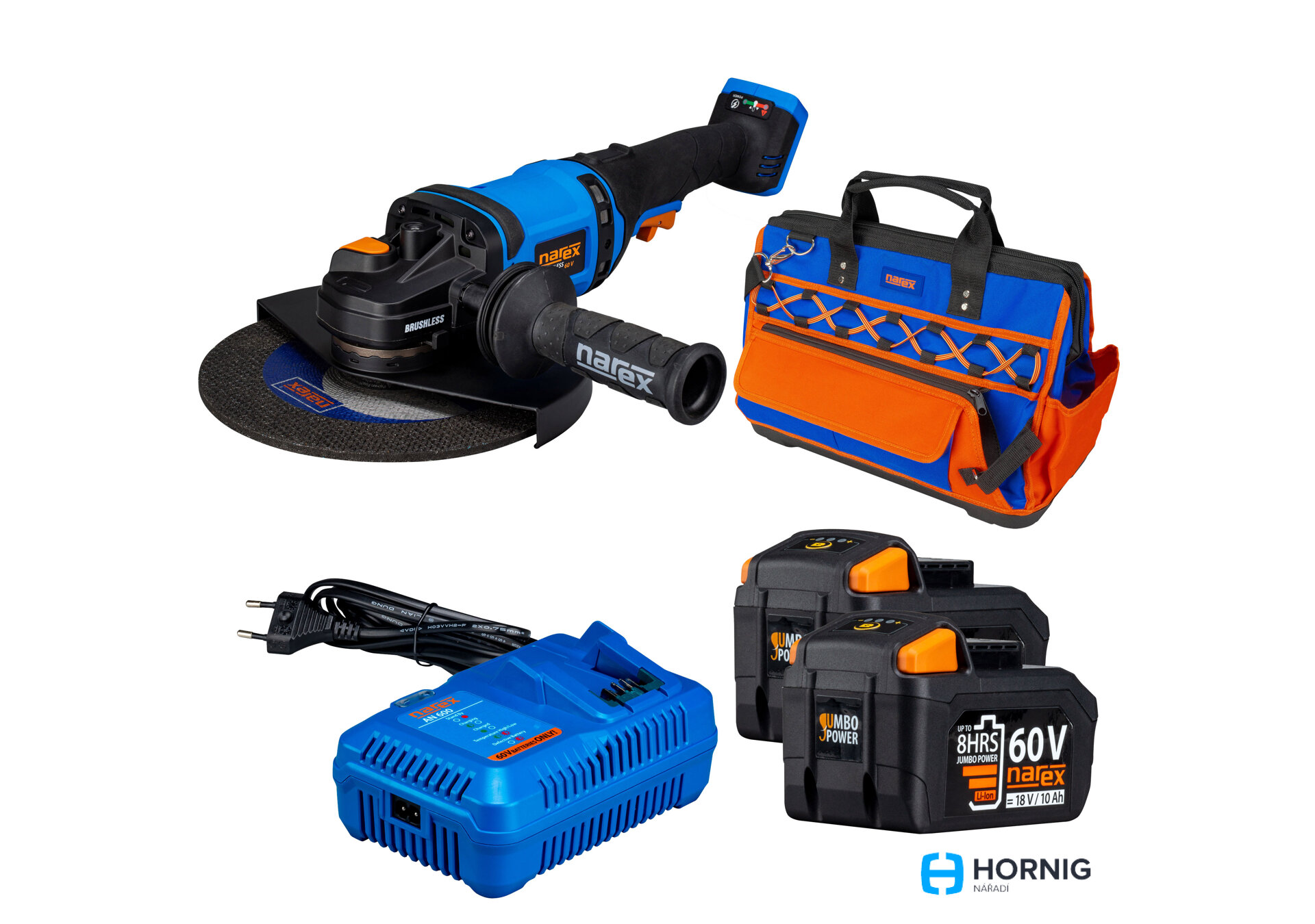 NAREX ABU 230-600 3B-SET aku úhlová bruska 230mm, 60V/2*3Ah, nabíječka, taška